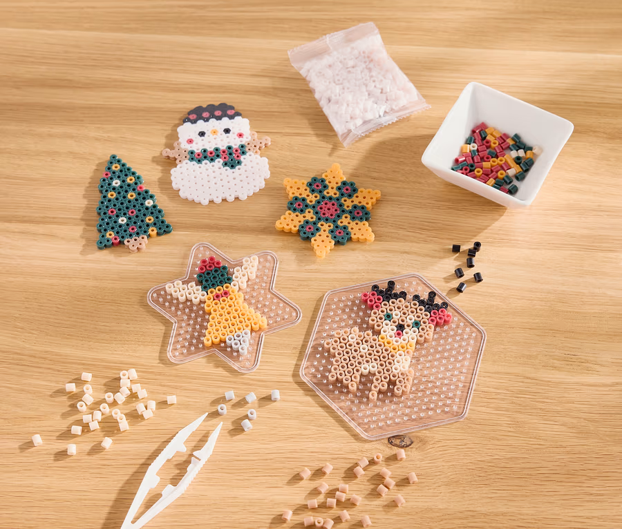 Včetně 2 000 zažehlovacích korálků v 8 různých barvách (každá barva 250 ks), pinzety, podložky ve tvaru šestiúhelníku, podložky ve tvaru hvězdy, šablony s motivem ve formátu A4 a návodu na tvoření