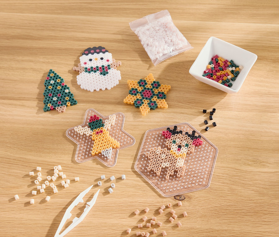 - Včetně 2 000 zažehlovacích korálků v 8 různých barvách (každá barva 250 ks), pinzety, podložky ve tvaru šestiúhelníku, podložky ve tvaru hvězdy, šablony s motivem ve formátu A4 a návodu na tvoření