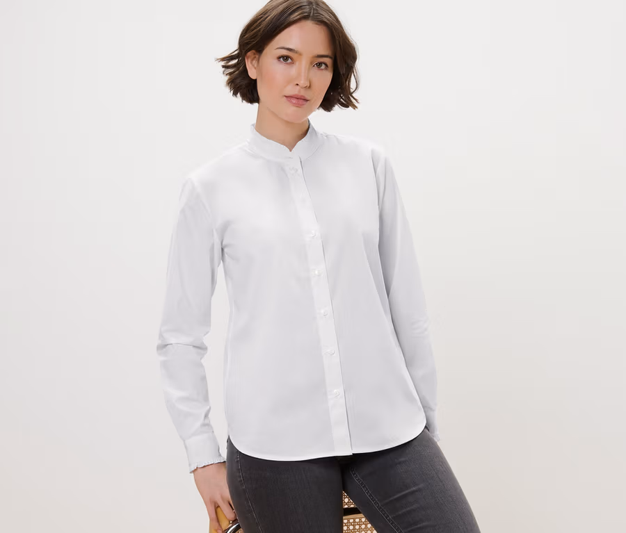 - Rukávy s manžetami na knoflíčky a s volánkovým okrajem
