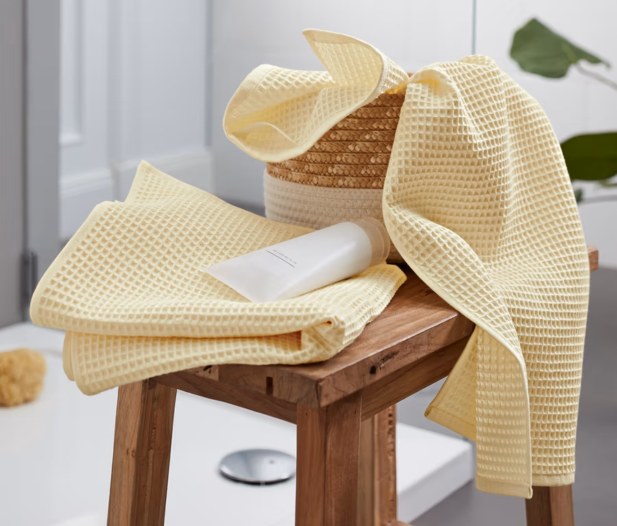 Prémiové ručníky s vaflovým piké, 2 ks, vanilkové
