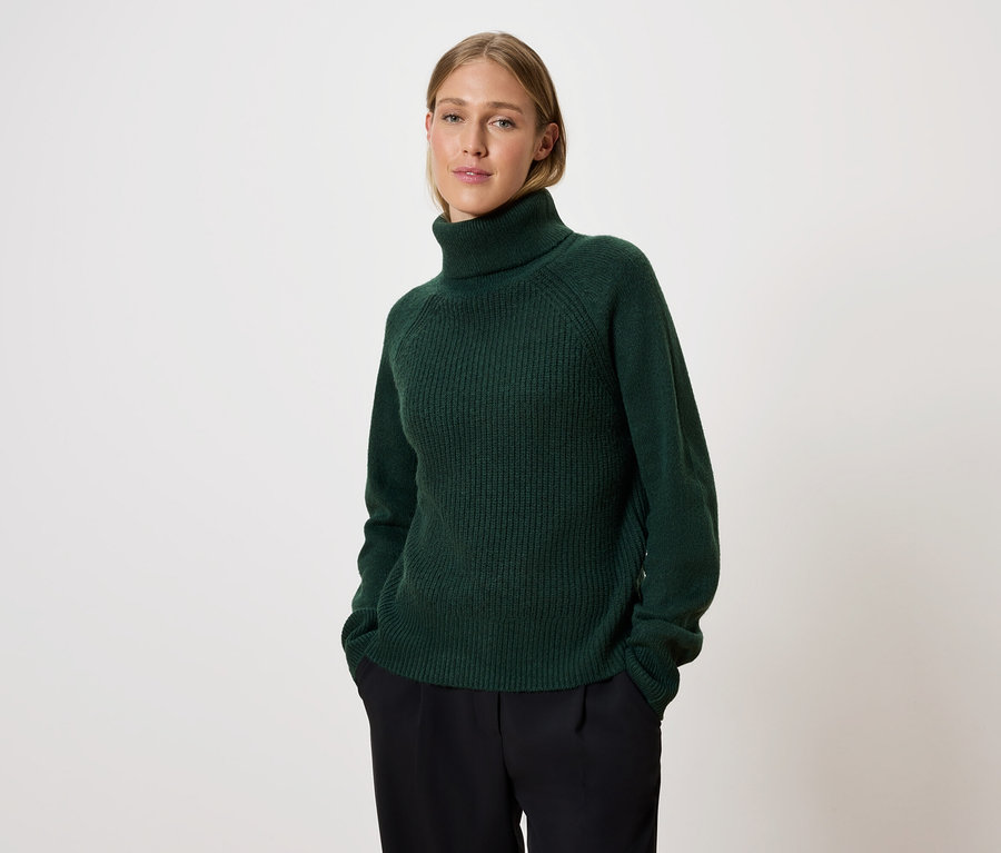 - Elastické žebrované náplety na roláku, koncích rukávů a spodním lemu