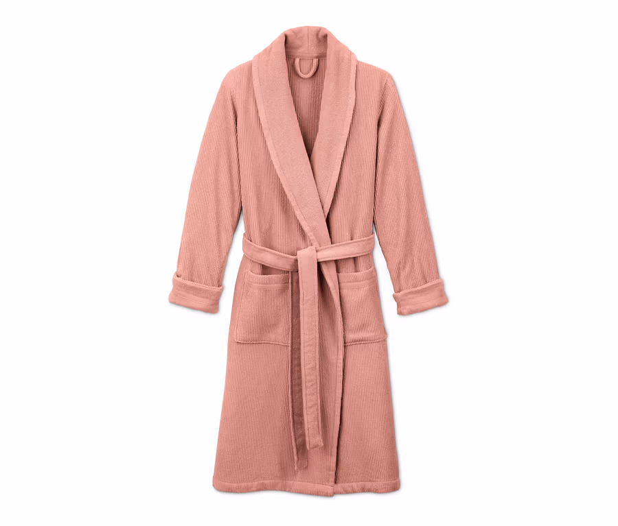 - Dámský župan se šálovým límcem, 2 nakládanými kapsami a páskem na zavazování
