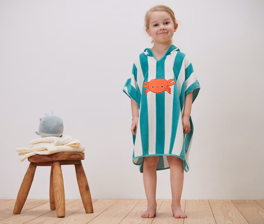 - Bílé a modrozelené proužky s oranžovou aplikací kraba