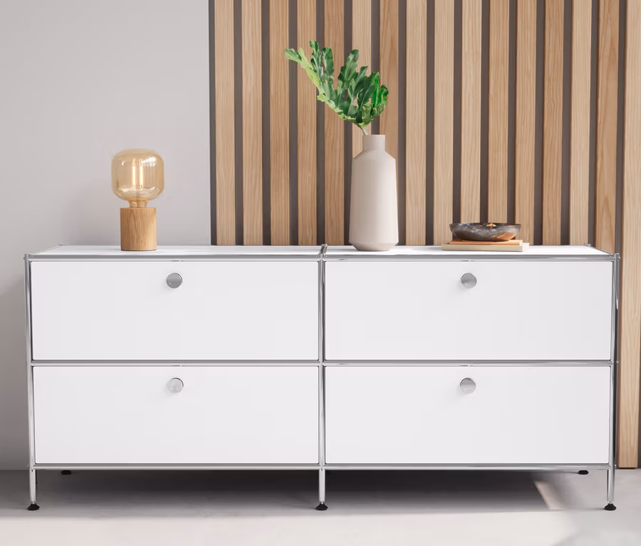 Nízká kovová skříňka »CN3« se 4 zásuvkami, bílá