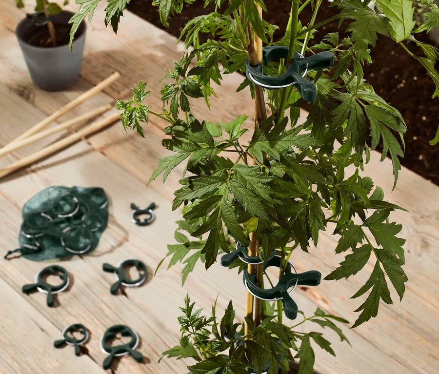 - Tyto svorky na rostliny obsahují plastové odpady.
