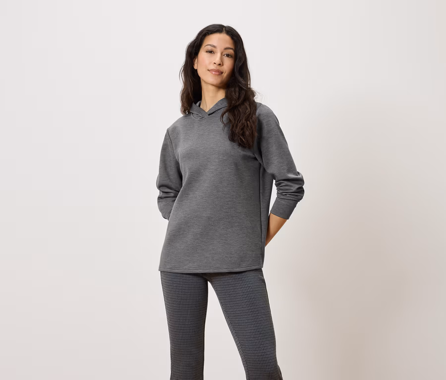 Mikina s kapucí z modalové směsi, šedá s melírem