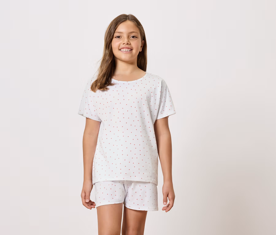 - 1x horní díl: proužky v bílé a starorůžové barvě, kalhoty: starorůžová