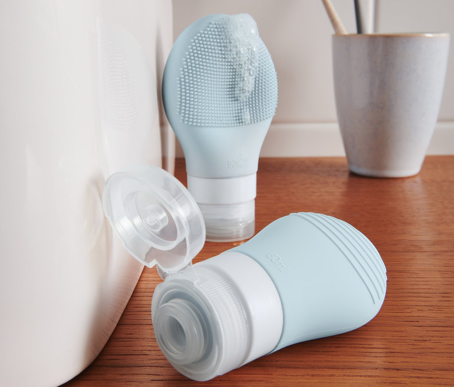 - Větší lahvička s jemným kartáčkem např. na čištění obličeje, malá lahvička s rýhami pro snadnou manipulaci