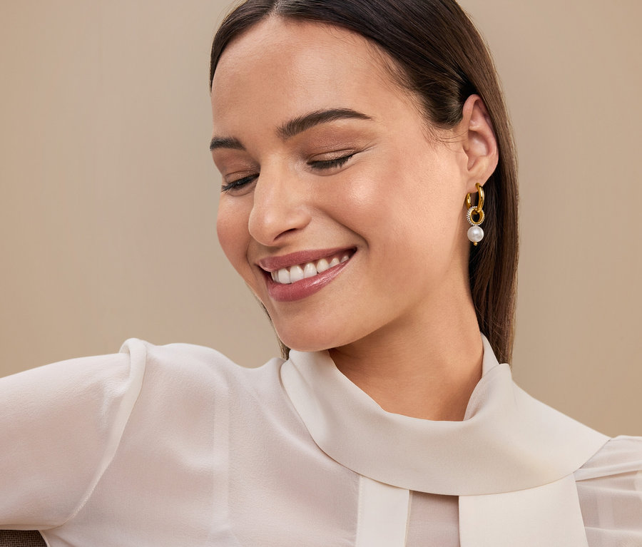 - Náušnice ve zlaté barvě s perlovým přívěskem