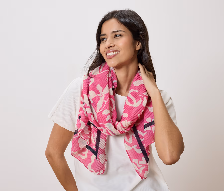 - Růžová s celoplošným květinovým potiskem v bílé barvě
