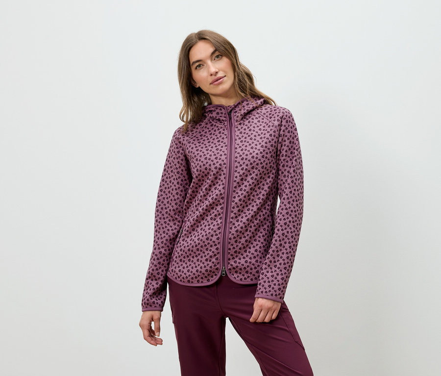 Bunda z pleteného fleecu s kapucí, celoplošný potisk