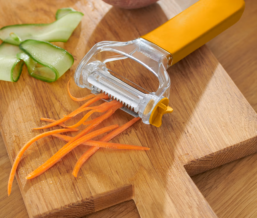 - Kráječ julienne – na rovnoměrné tenké proužky zeleniny např. z cukety nebo mrkve