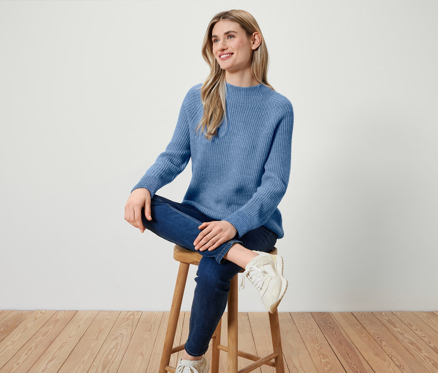Svetr z hrubého úpletu se stojáčkem, modrá