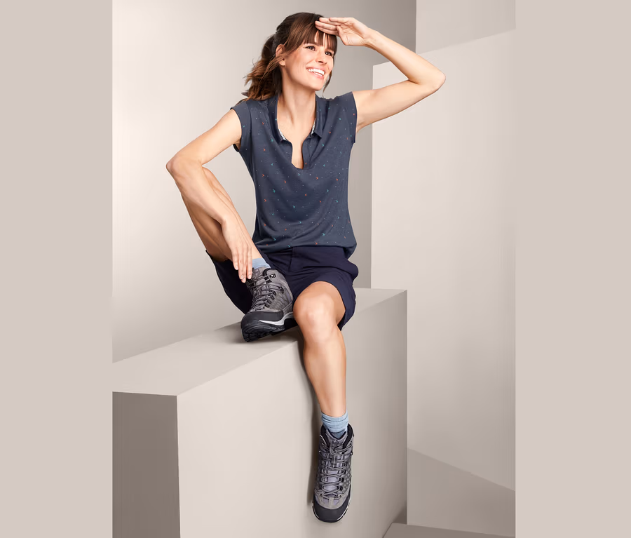 Tento top je ideálním průvodcem na teplé letní dny. Výstřih do V s úzkým límcem, ležérní střih a zaoblený spodní lem zajišťují módní, elegantní vzhled. Měkce splývavá viskózová směs ještě podtrhuje eleganci tohoto dámského vršku. Top však kromě toho, že výborně vypadá, boduje i materiálem. Je totiž opatřen úpravou DryActive Plus, takže je prodyšný, dobře odvádí vlhkost a rychle schne.