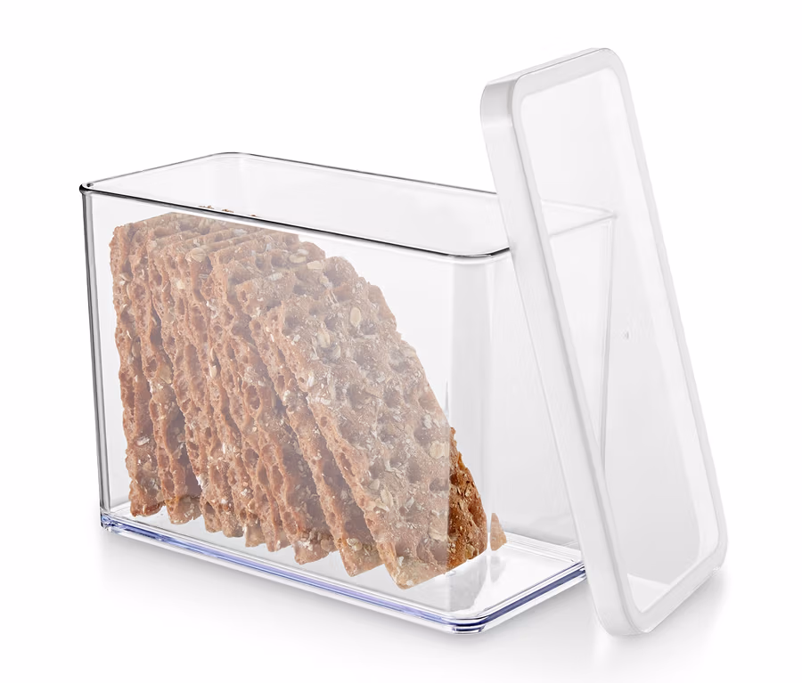 Knäckebrot je hoden svého názvu jen tehdy, je-li čerstvý a krásně křupavý. S tím vám pomůže tato dóza, do které se vejde jedno běžně dostupné balení knäckebrotu. Dóza je vyrobená z průhledného plastu a díky víku, které nepropouští vzduch ani vůni, udrží svůj obsah déle čerstvý. Dózu lze samozřejmě použít i na jiné potraviny, jako je rýže, sušené ovoce nebo sušenky.