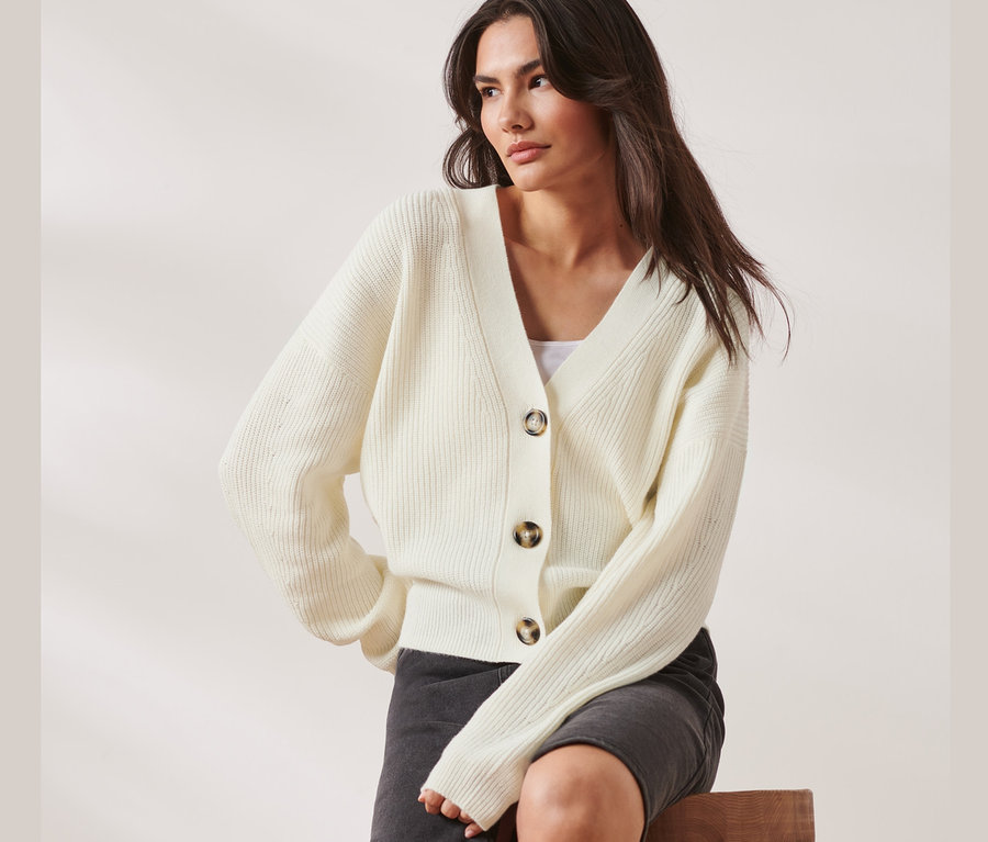 - Tento kardigan obsahuje odpadní suroviny z výroby.