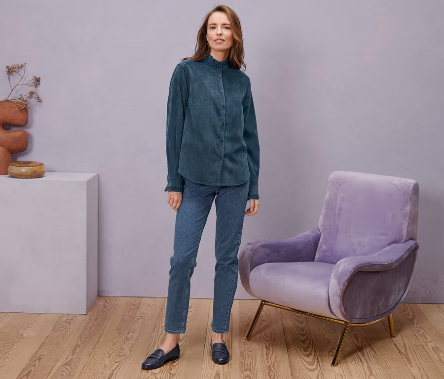 Manšestrová halenka s volánkovými detaily