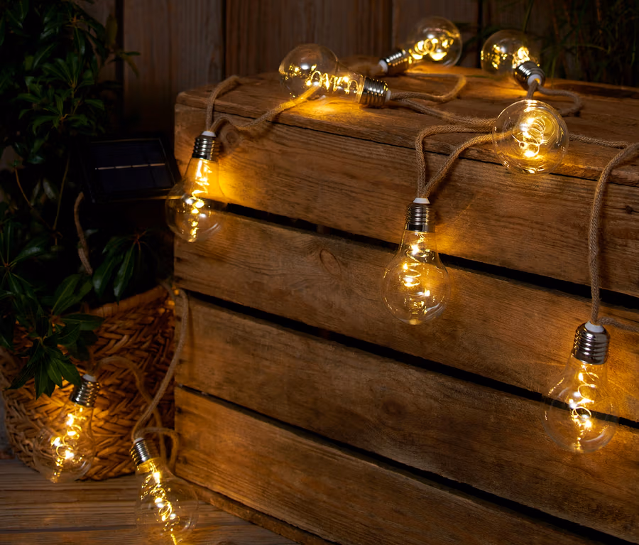 Solární světelný řetěz s jutovým provazem