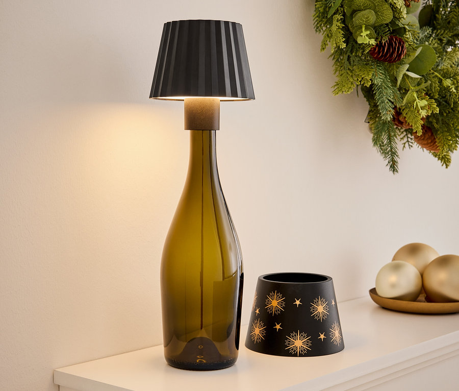 - Stačí nasadit stínítko a vaše oblíbená láhev se promění v dekorativní lampu