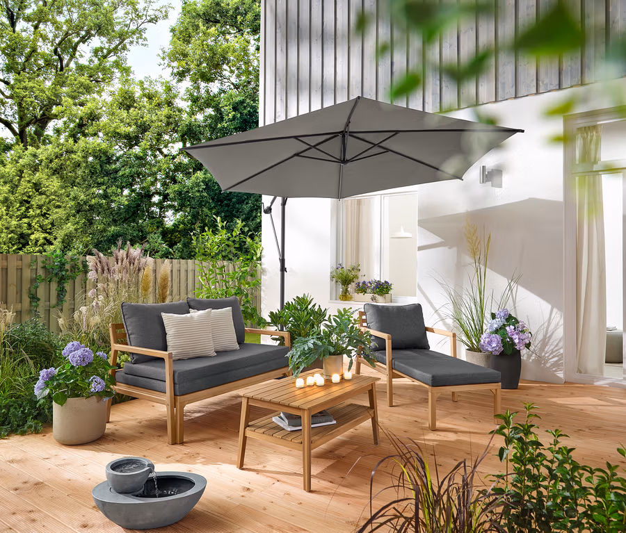 - Konstrukce z olejovaného eukalyptového dřeva s certifikací FSC® v teakovém vzhledu