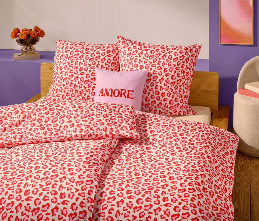 - Krémová bílá s leopardím vzorem v červené a růžové barvě