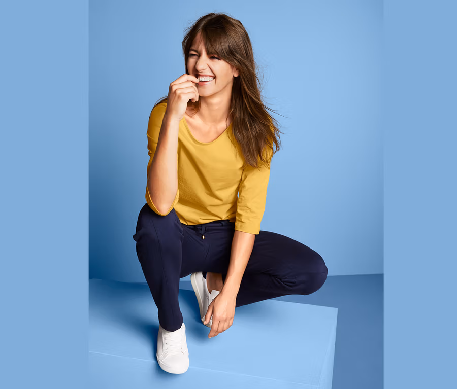 Ať už jako doplňkový barevný akcent k elegantním tónům, nebo jako součást stylu colourblocking: Toto dámské triko v trendy žluté barvě se dá kombinovat absolutně individuálně. Triko s 3/4 rukávy a mírně projmutým střihem je nesmírně univerzálním kouskem v každém šatníku. Triko je vyrobené z obzvlášť měkké směsi bavlny a elastanu – díky zapracovaným elastanovým vláknům dobře drží tvar, perfektně sedí a výborně se nosí.