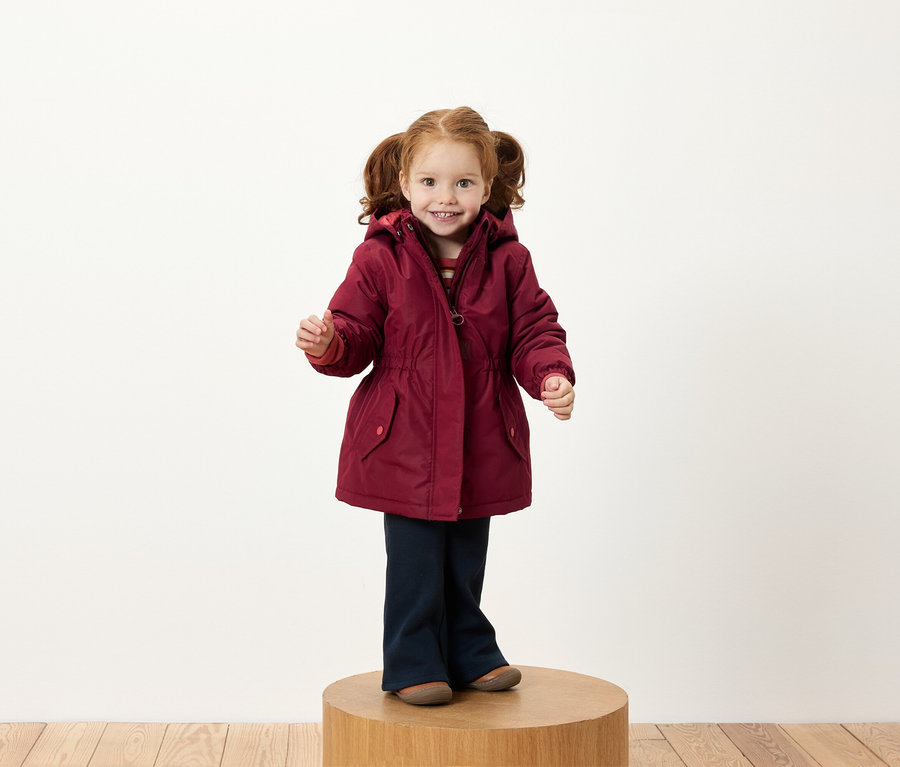 - Vnější bunda: vínová červená s podšívkou ve světle červené barvě