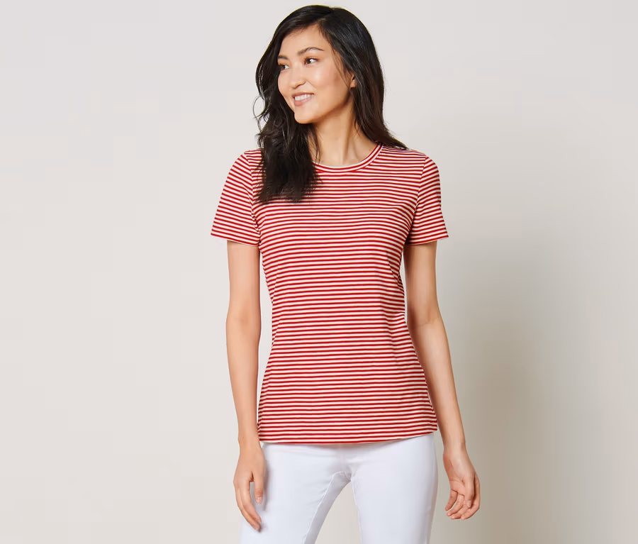 - S proužky v červené a krémově bílé barvě