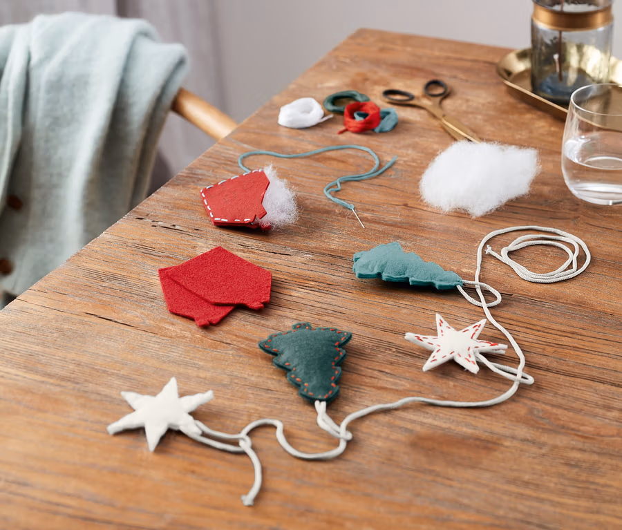 • Látka a střižní zboží: 6 plstěných dílů, 2 šňůry, příze, jehla, výplňová vata a návod v sadě