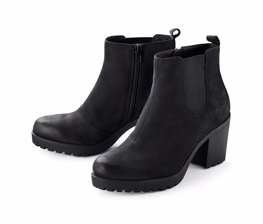 Tyto kozačky jsou jako dělané pro procházky: Může být sice námraza, ale v těchto nízkých kozačkách se chodí jistě a stylově. Mírně zvýšená, profilovaná podrážka a široký šesticentimetrový podpatek jsou ideální i na delší nákupy nebo prohlídky měst. Boty jsou vyrobené z kvalitní kůže nubuk, díky elastické vsadce jsou příjemně měkké a pohodlné. Také obouvání je snadné: Boční zip a poutko na zadní straně boty usnadňují nazouvání. Tyto dámské kotníkové kozačky jsou zkrátka ideálním kouskem na všechny cesty.