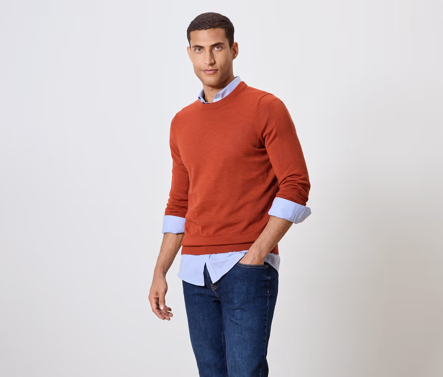 Svetr z vlny merino, oranžová s melírem