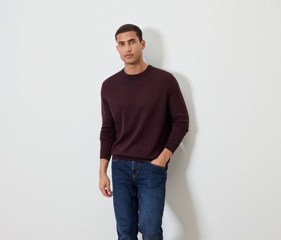 Svetr z vlny merino, tmavě červená s melírem