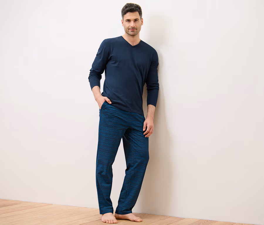 Kalhoty: tmavě modrá s celoplošným potiskem v modré barvě