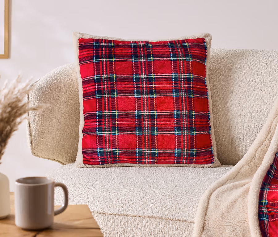 - Oboustranný – přední strana kostkovaná, zadní strana z imitace ovčího rouna (sherpa)