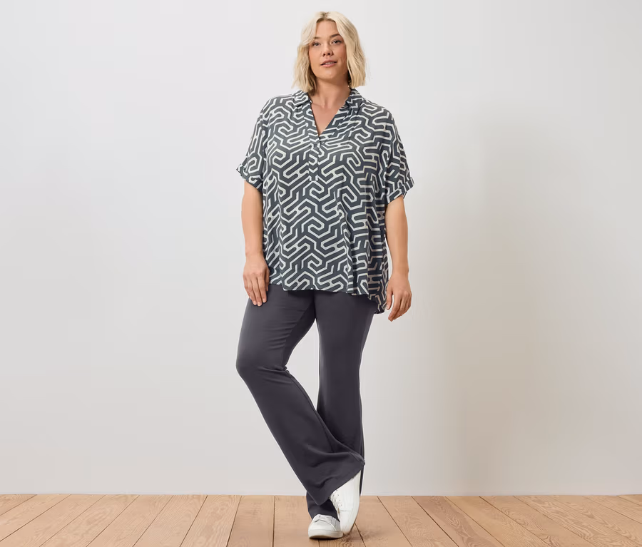 - Vzhledem k přirozeným vlastnostem viskózy mačkaného vzhledu má tento výrobek tendenci se srážet. Doporučujeme proto výrobek po vyprání vytáhnout do tvaru a lehce přežehlit nebo napařit.