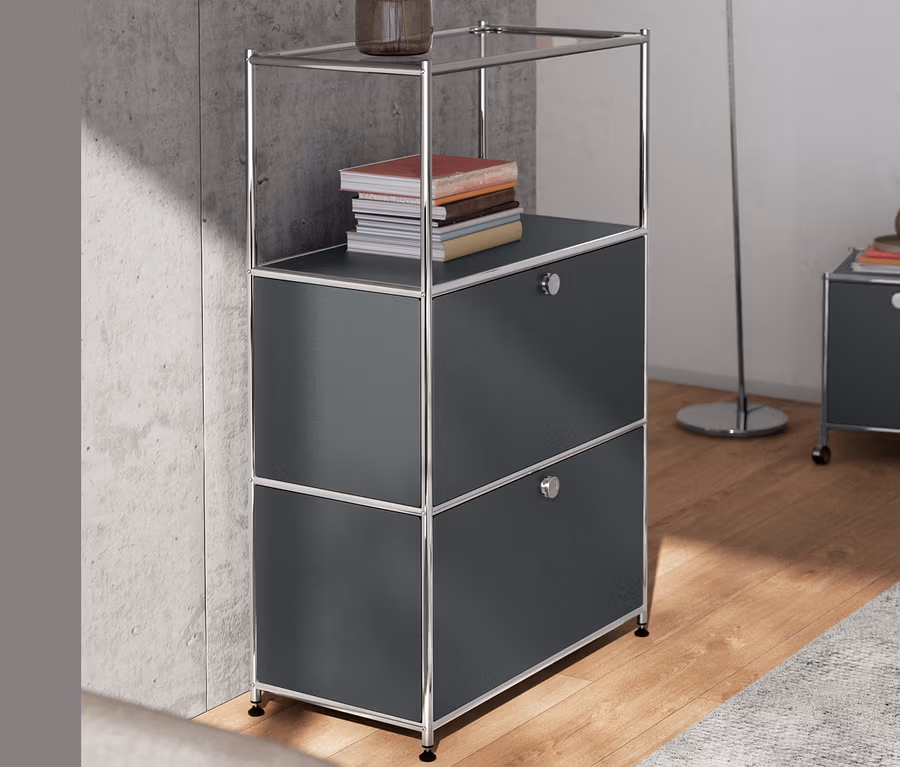 Kovová komoda CN3 se 2 výklopnými dvířky, šedá