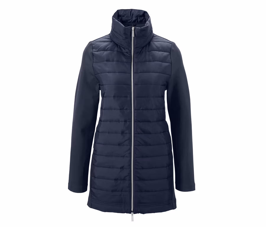 Na přední straně je ultralehké, hřejivé vatování, díky němuž můžete klidně čelit i chladnějším teplotám. Zadní strana a rukávy jsou naopak vyrobené z měkce splývavého žerzeje – kabát se tak bez problémů přizpůsobí každému pohybu. Zip kontrastní barvy dodává kabátu módní akcent a dvě boční šikmé kapsy se zipem nabízejí místo například na rukavice nebo ruce.