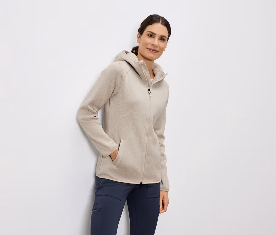 Bunda z pleteného fleecu s kapucí, krémová bílá