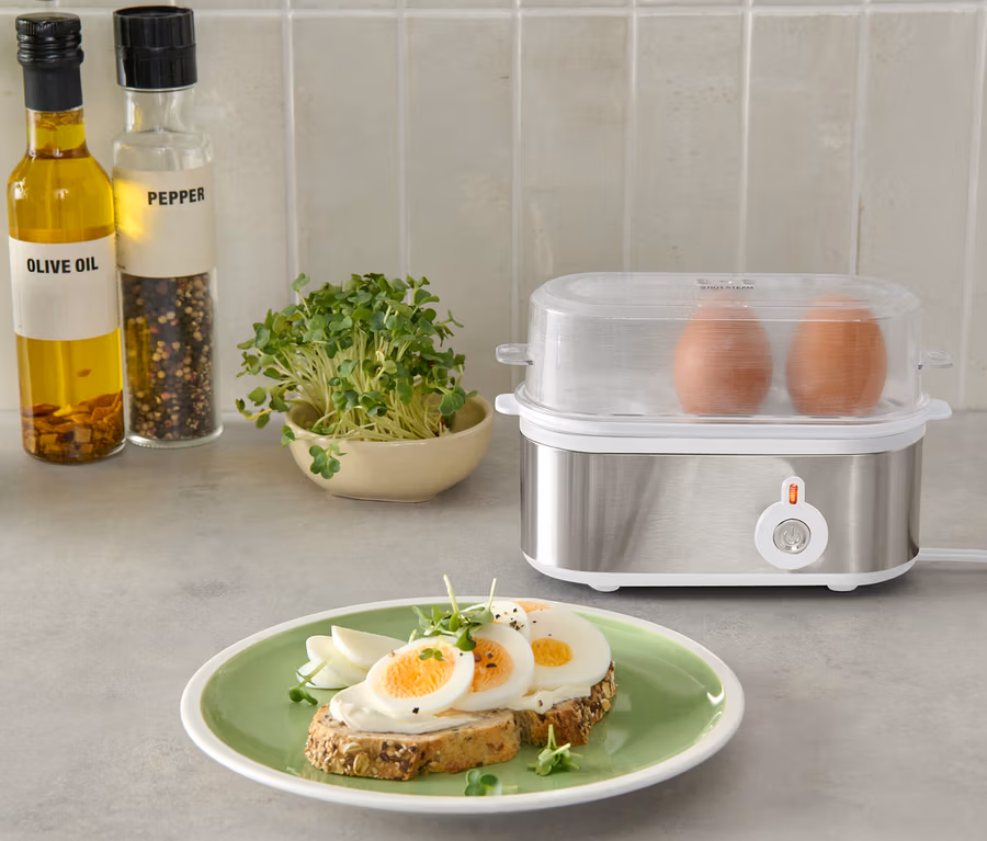 - Snadné čištění: víko, nosič vajec a odměrku lze mýt v myčce nádobí