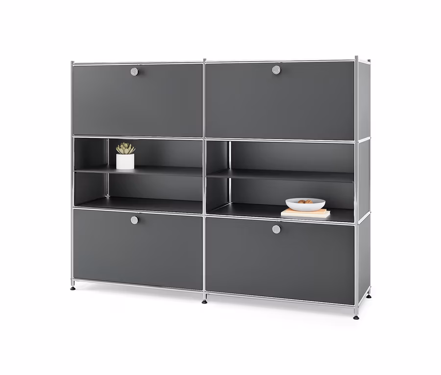 Kovová komoda »CN3« se 4 výklopnými dvířky, šedá