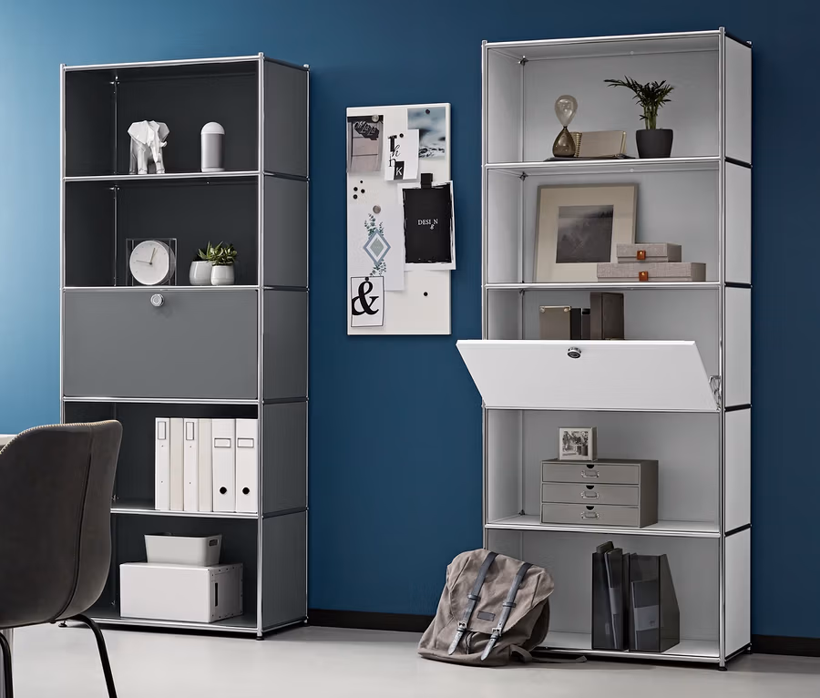 Kovový vysoký regál CN3 s výklopnými dvířky, bílý
