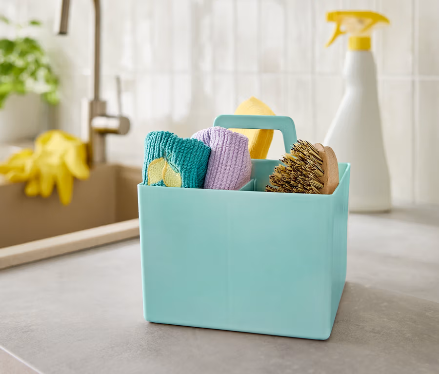 - Pro uložení čisticích prostředků, kartáčů a houbiček, ale i dalších pracovních pomůcek