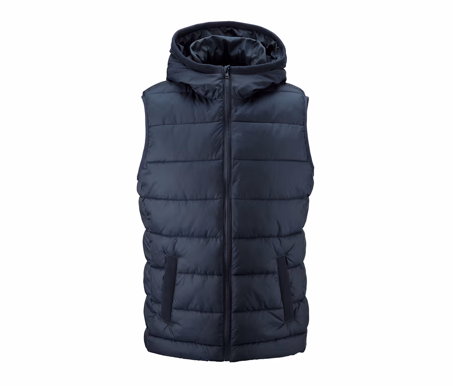 Tato prošívaná vesta s kapucí skvěle kombinuje úžasnou volnost pohybu s příjemně hřejivým vatováním – pro perfektní outfit na přechodné období. Vesta má na dvou bočních šikmých kapsách a na kapuci elastický žebrovaný lem, který zajišťuje, že příjemně sedí. Vnitřní kapsa nabízí prostor např. na smartphone nebo na peněženku.