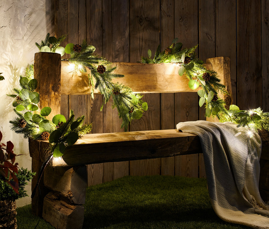 - Umělá větvička s borovými šiškami, jedlička, eukalyptus v přírodním vzhledu