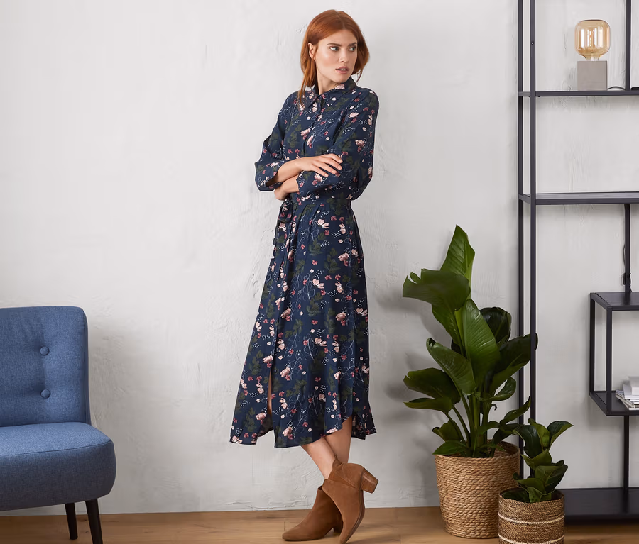 - Tmavě modrá s barevným květovaným celopotiskem