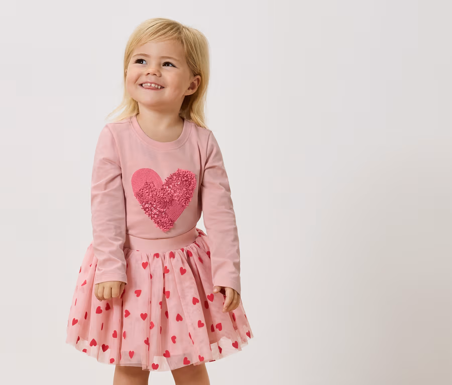 - Od vel. 98/104 srdíčko s flitry a šifonovou aplikací a motýlci s oboustrannými flitry