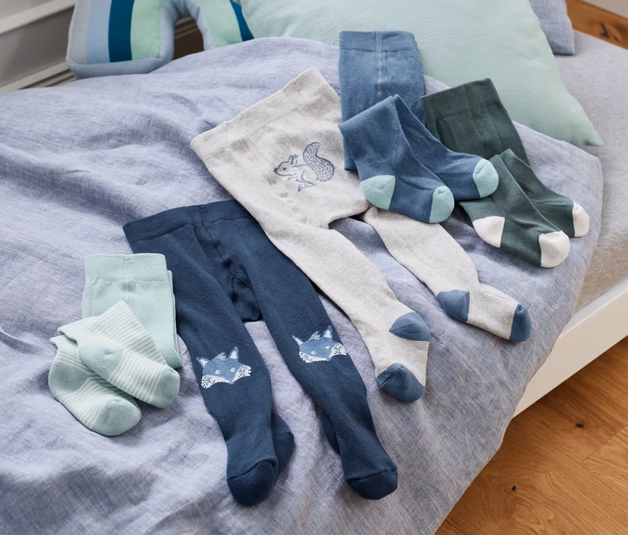- 1x zeleno-modrá s bílými proužky, 1x olivově zelená, 1x tmavě modrá s vpleteným vzorem lišky, 1x denimově modrá, 1x šedá s potiskem veverky