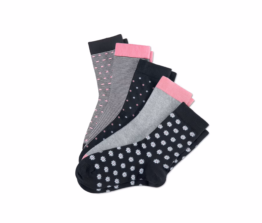 Tyto patery dámské ponožky mají různý vzhled, ale všechny dodají outfitu hezký akcent. Navíc jsou vyrobené z materiálu s vysokým podílem biobavlny, takže jsou příjemně měkké na tělo. Pohodlné lemy perfektně sedí, aniž by se zařezávaly. Tvarově stabilní ponožky jsou vyrobené z materiálu s elastanem, takže se výborně nosí, a mají extra plochý šev v oblasti prstů a rovněž zesílenou špičku a patu.