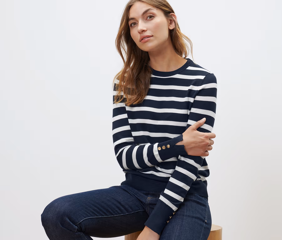 Pruhovaný svetr z jemného úpletu, tmavě modrý