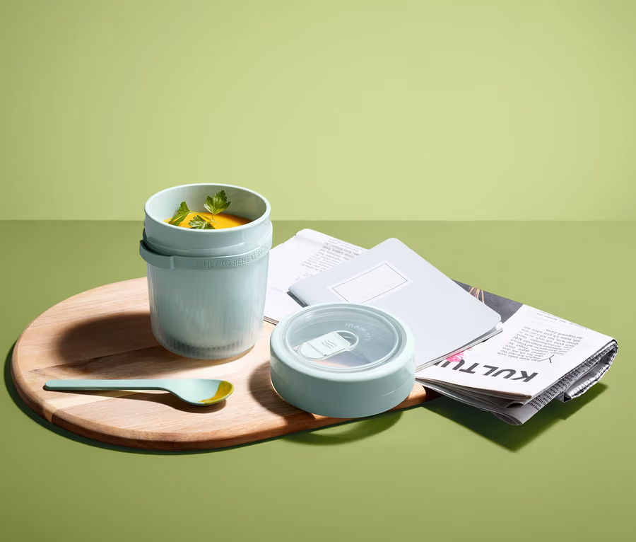 Ideální pro každého, kdo má rád polévku – i na cestách. V tomto cestovním hrnku na polévku můžete bezpečně přepravovat polévku a pokrmy typu eintopf a můžete si je vychutnat, kdekoli se vám zachce. Dvoustěnný hrnek udrží polévku minestrone krásně teplou nebo gazpacho krásně v chladu – a izolační funkce se postará, aby ruce netrpěly přílišným horkem nebo chladem. Díky integrovanému ventilu je možné ohřát obsah hrnku i v mikrovlnné troubě.